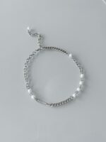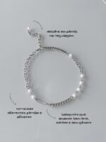 Colar Pearl Pin, feito com corrente de pérolas artesanal prata