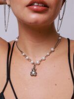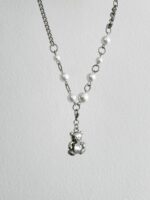 Colar Shine Bear,  feito com pérolas em diferentes tamanhos e pingente de urso bear removível