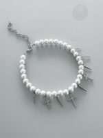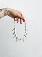 Para quem ama misturar a delicadeza das pérolas com o mood alternativo das cruzes, vai amar esse novo modelo. Ele tem cruzes diferentes e spikes intercalados, com essas pérolas maiores e ainda é perfeito para usar em um mix com a versão dele com franjas. Feito artesanalmente e pensado para as suas melhores produções.