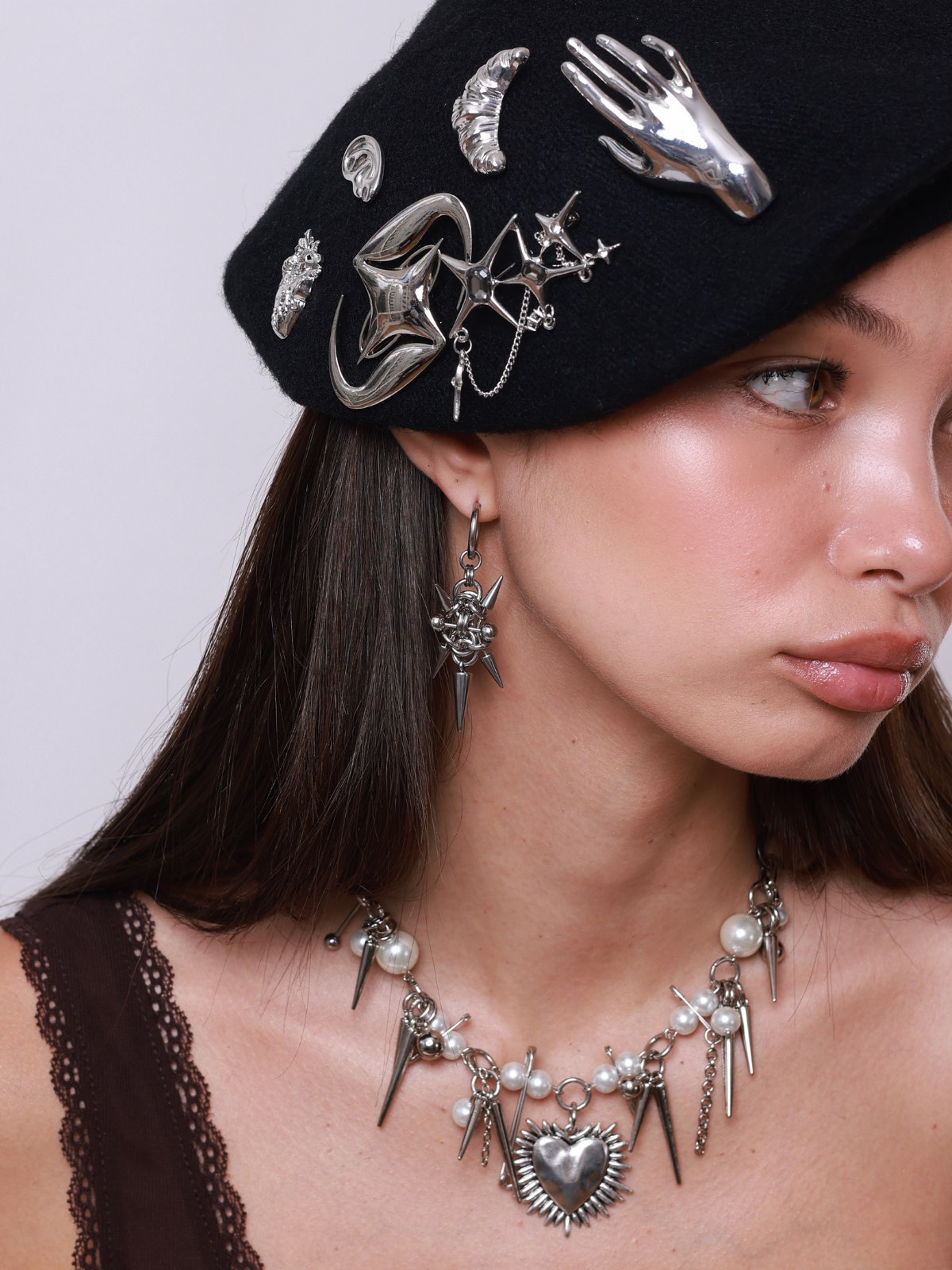 Essa peça é para quem não abre mão de atitude e estilo. Cada detalhe foi pensado para criar contraste entre o bruto e o delicado, entre o romântico e o punk. O resultado? Um acessório que transforma qualquer look básico em algo poderoso, cheio de presença e estilo.