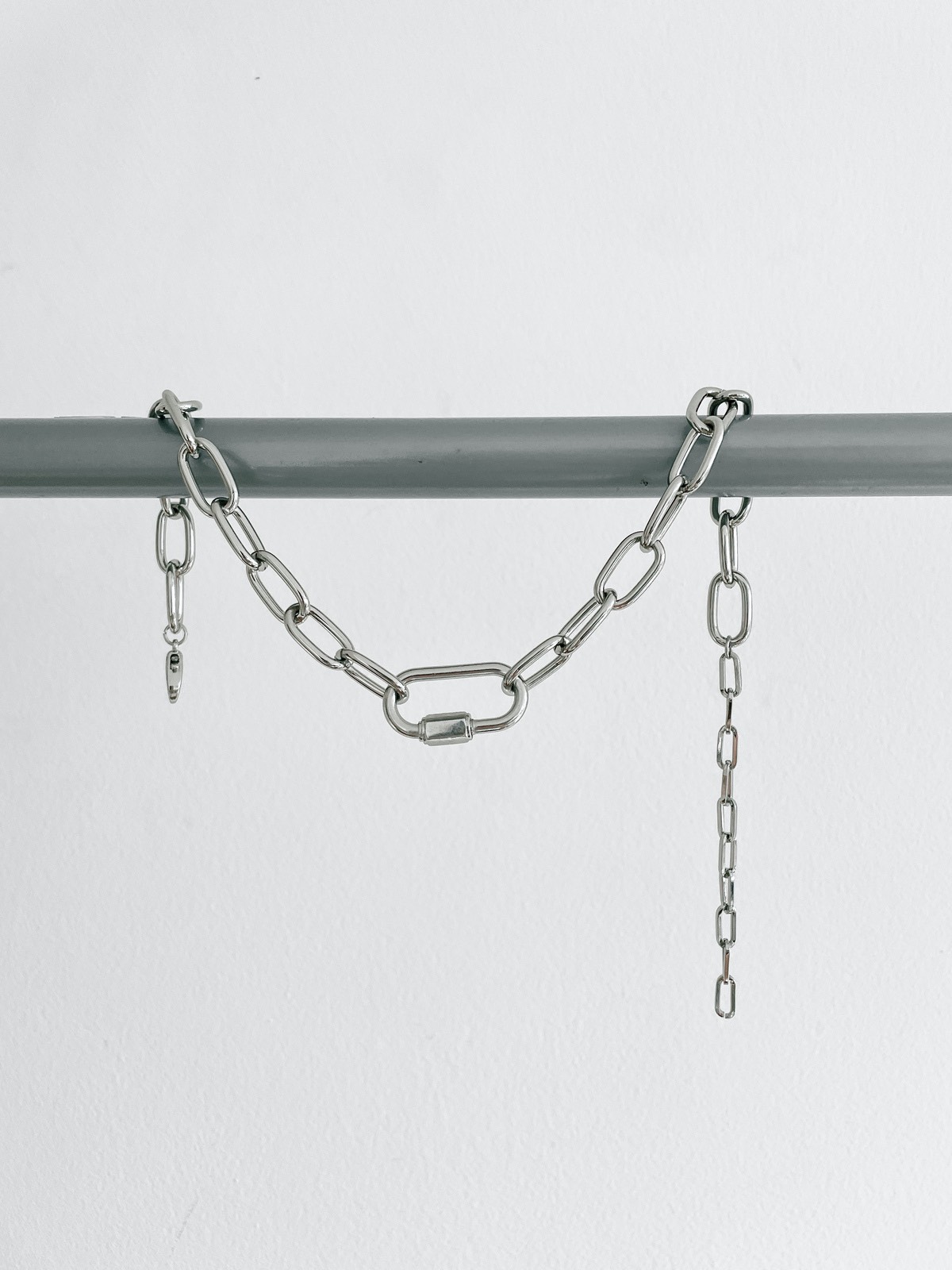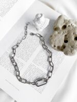 Colar com elo industrial e corrente de metal prata