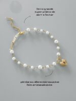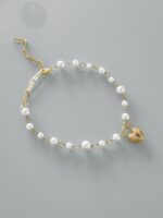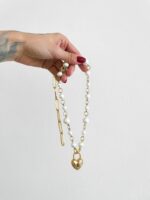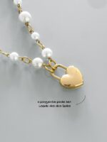 Colar Style Heart Gold, feito com pérolas e pingente cadeado em formato de coração dourado