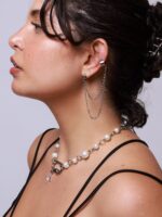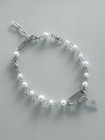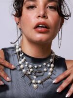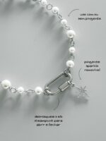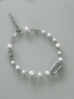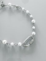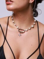 Colar Style Pearl, feito com pérolas e mosquetão elo steampunk prata