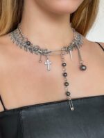 Colar Thunder, feito com mix de pingentes e corrente níquel