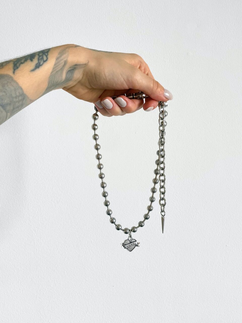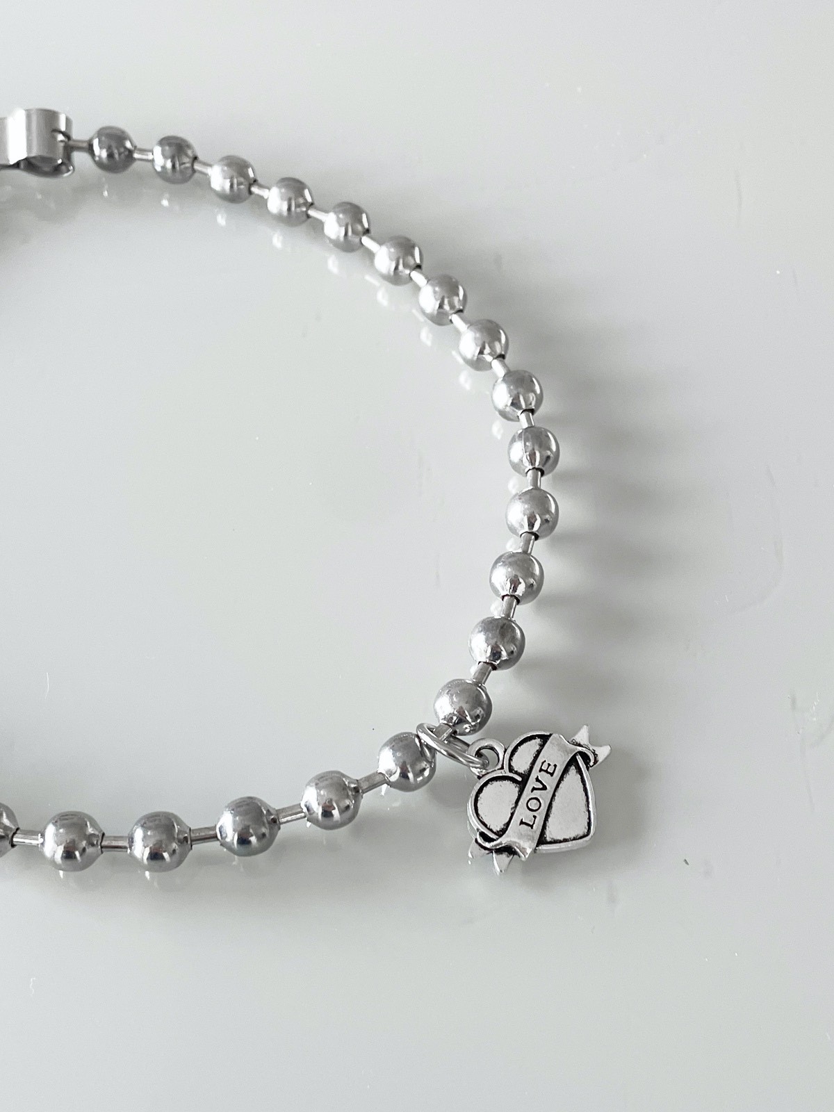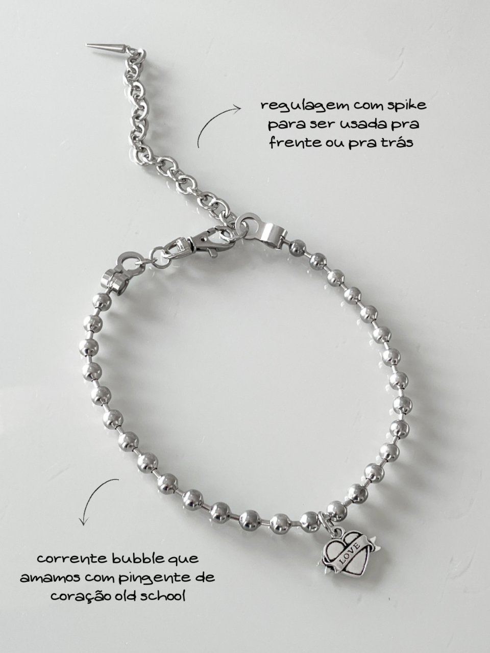 Composè Love, feito corrente de bolinha prata e pingente de coração Love