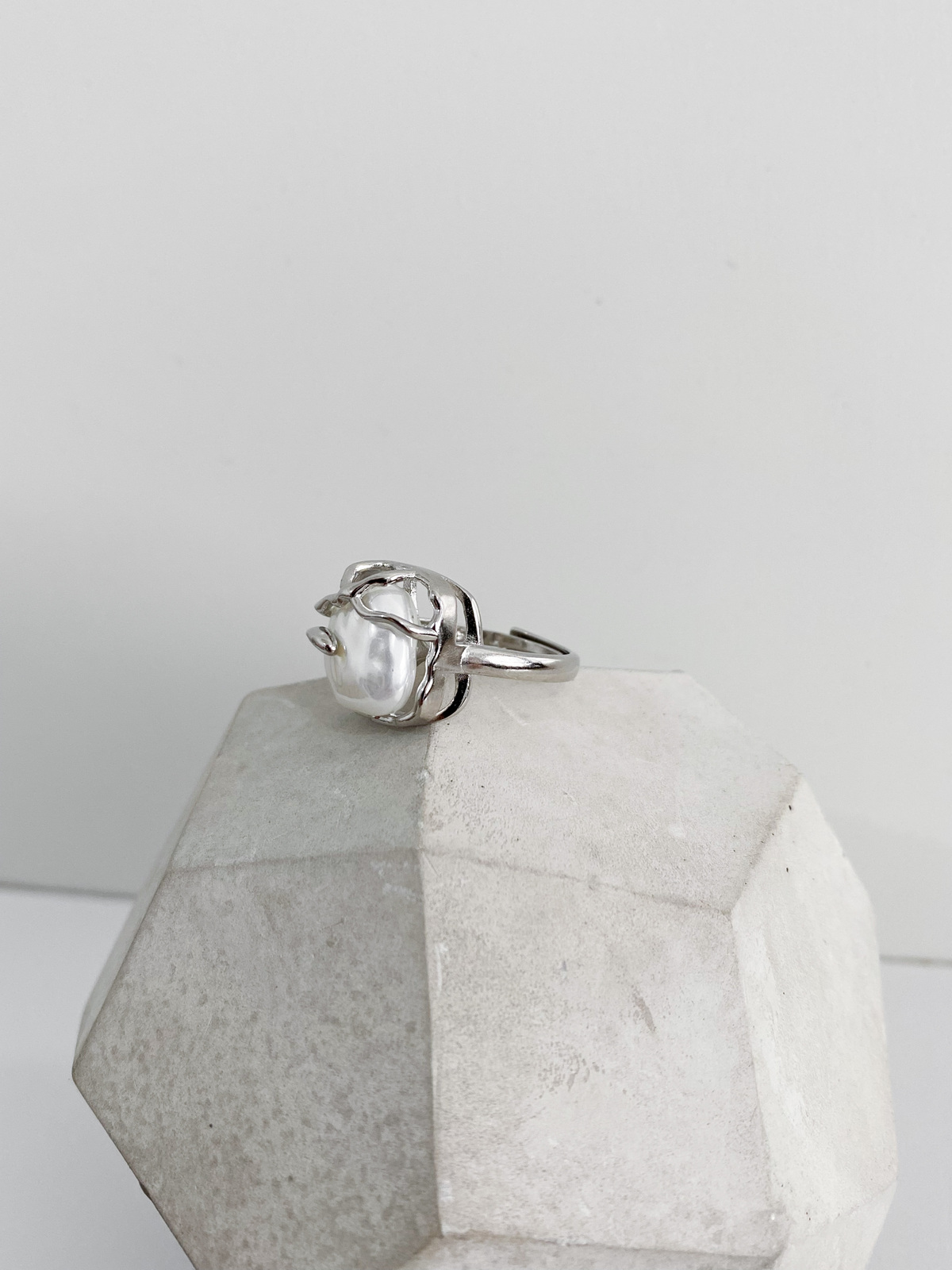 Duo Organic Pearl, anéis com formato irregular, pérola e banho prata 925