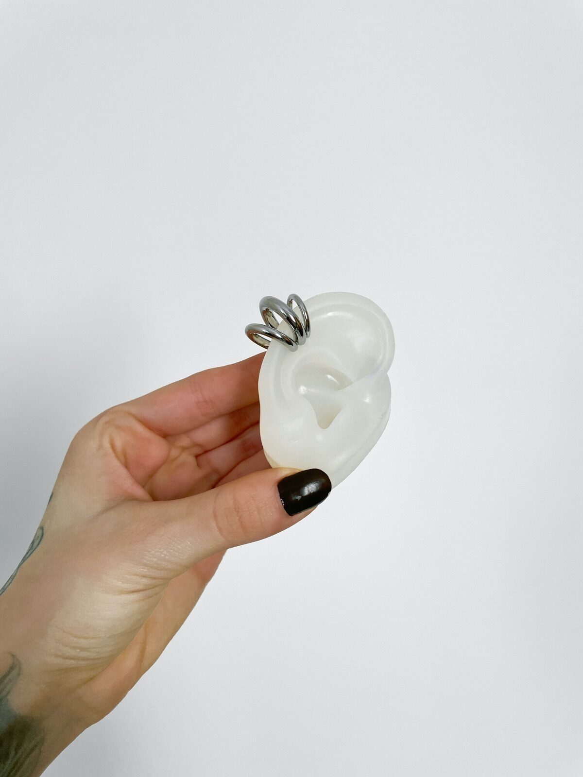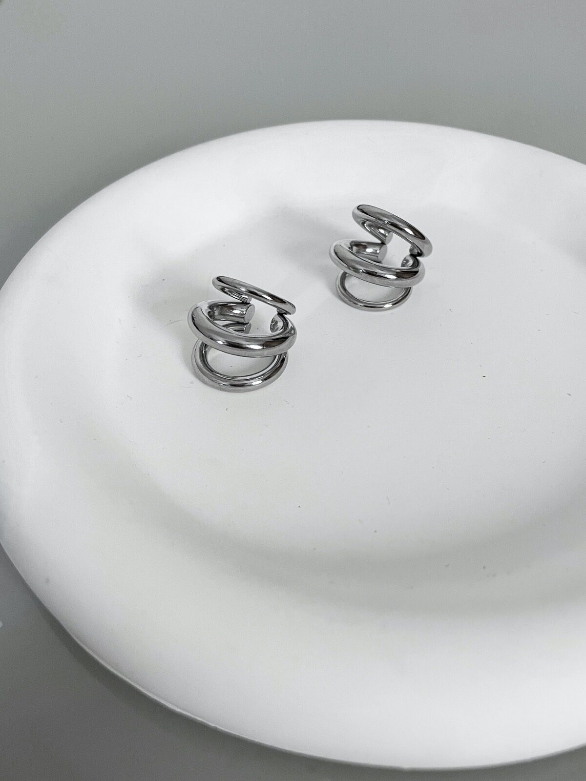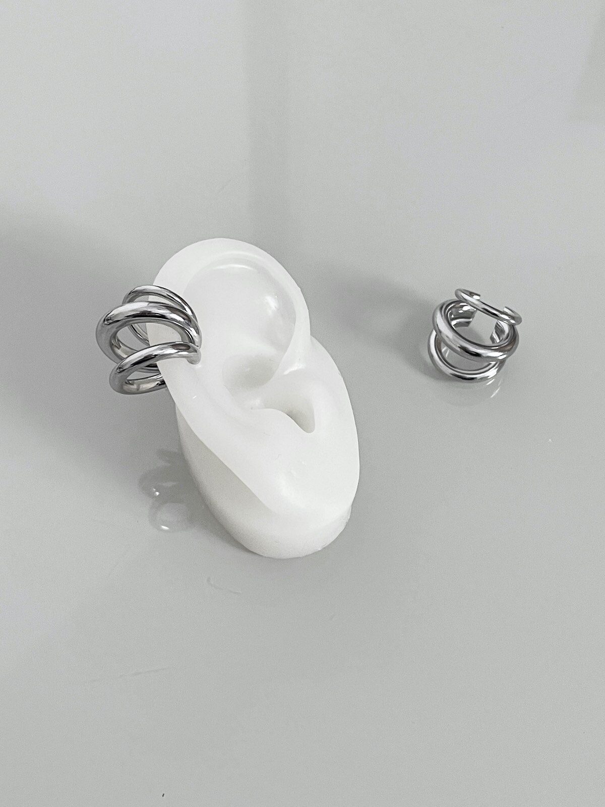 WOW! Esse ear cuff é ICÔNICO! Com design de três meia-argolas sobrepostas, ele cria um efeito moderno e estruturado que abraça a orelha com atitude. A peça tem acabamento prateado espelhado e é toda lisa, o que dá um ar minimalista com impacto — perfeita pra quem ama acessórios alternativos. Não precisa ter furo! É só encaixar e pronto: o look já ganha outro nível. Você pode usar mais pra cima na cartilagem ou mais embaixo, do jeito que preferir. Sozinha ele já brilha, mas também fica incrível em composição com outros brincos ou piercings. Ah, e diferente da maioria dos ear cuffs que vendem só uma unidade, essa aqui vem o par. Porque estilo nunca é demais. Enjoy!