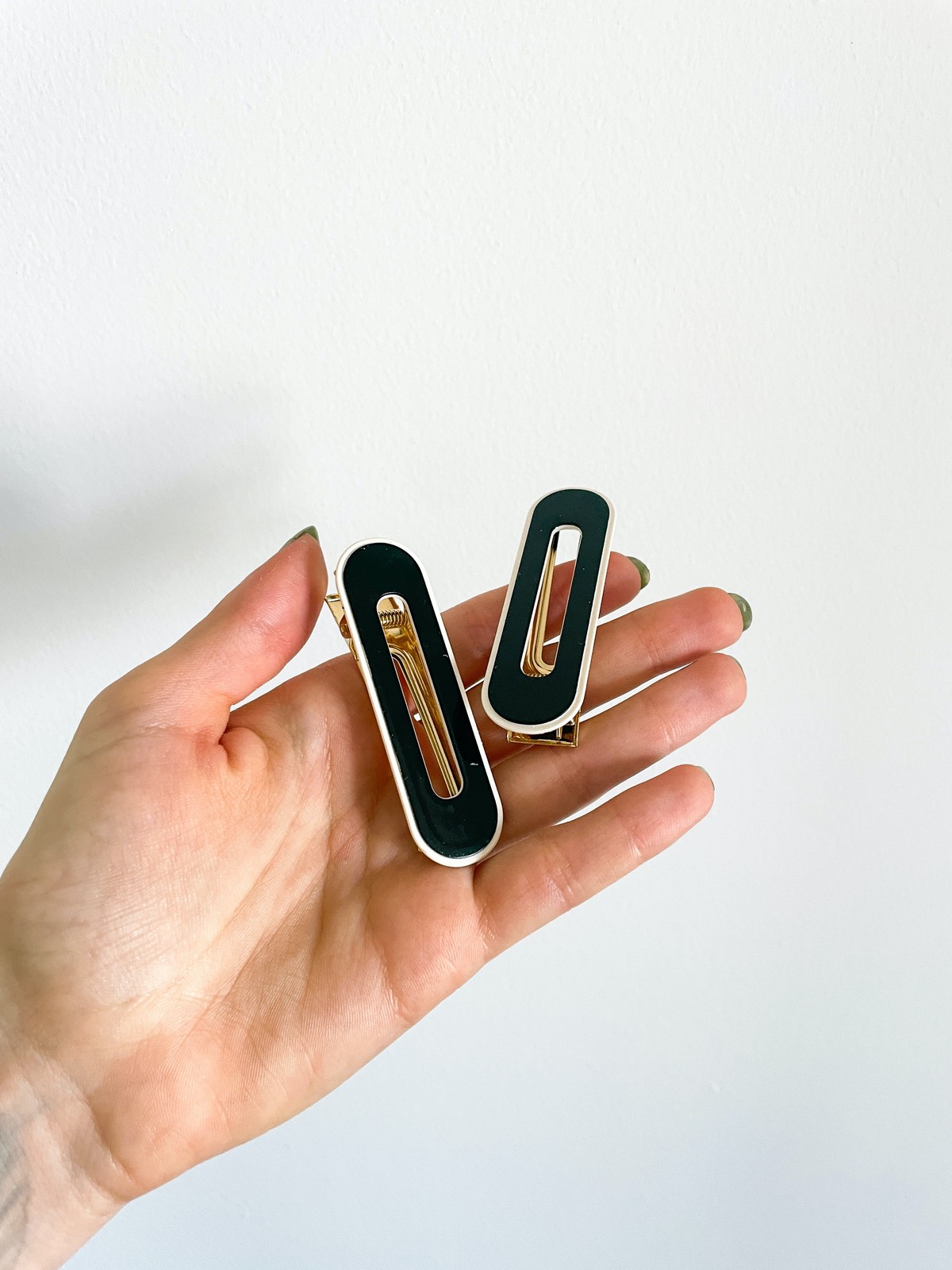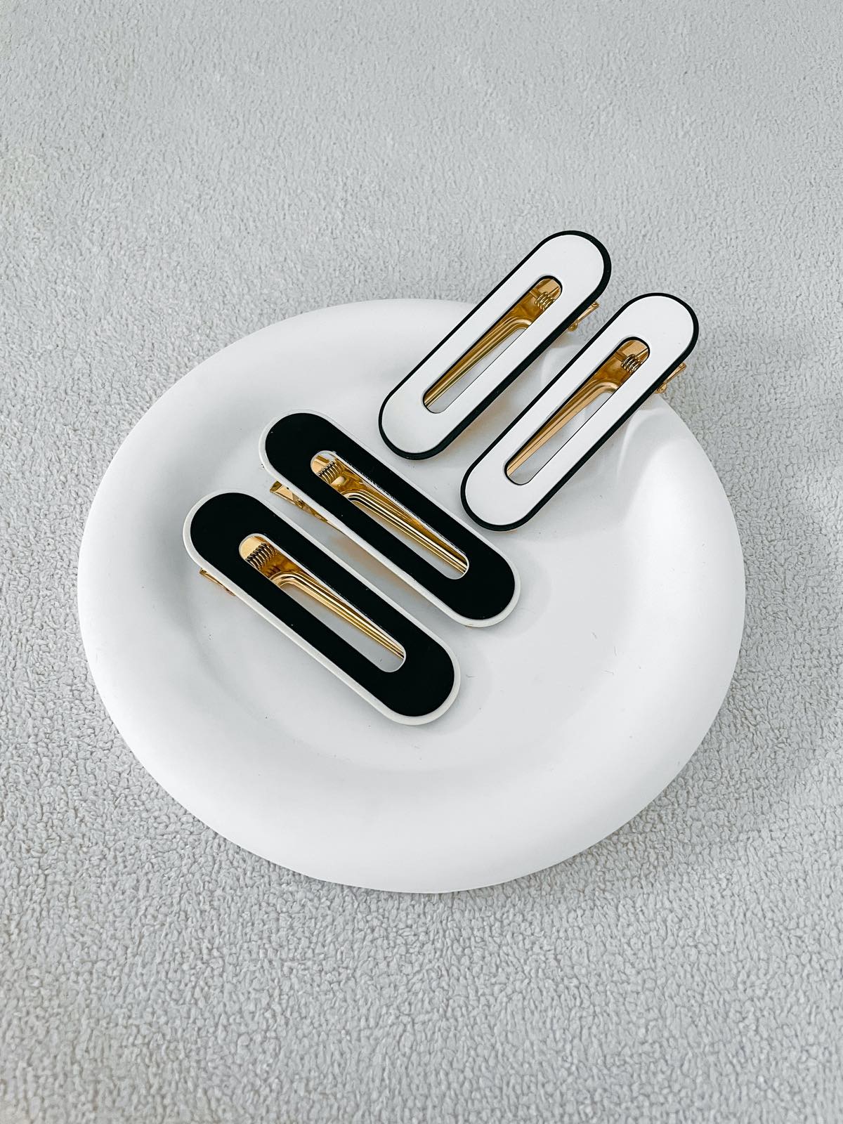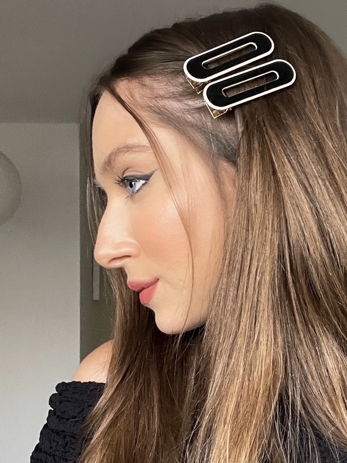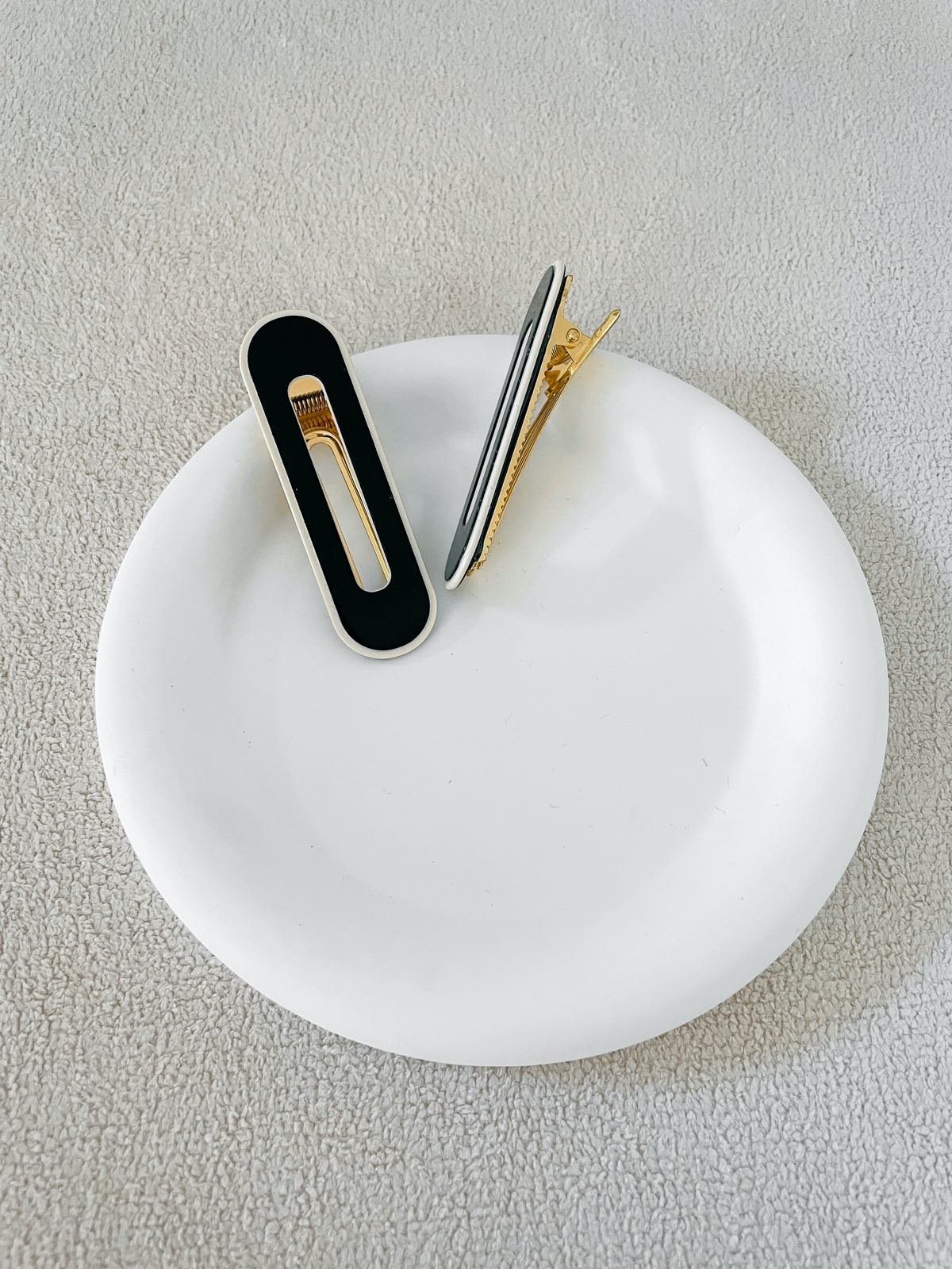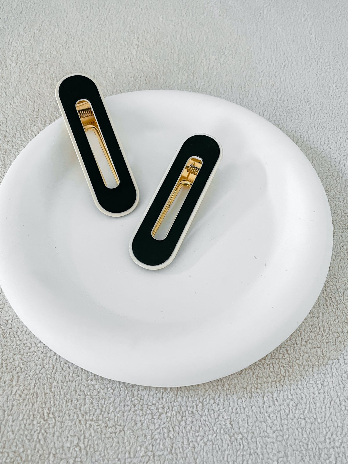 Hair Clip Girly Black, presilha de cabelo em resina preta com formato oval, super estilosa