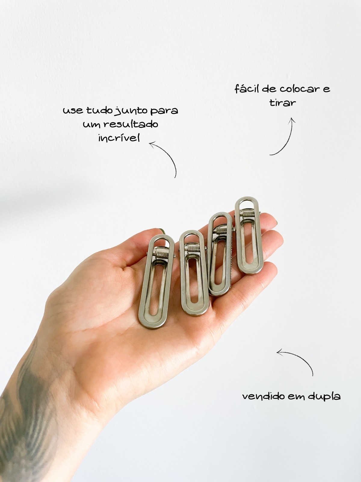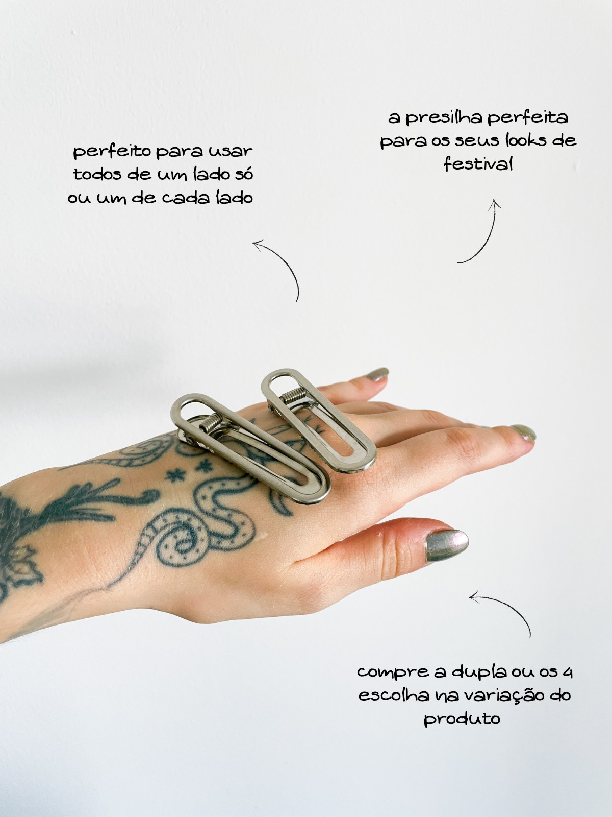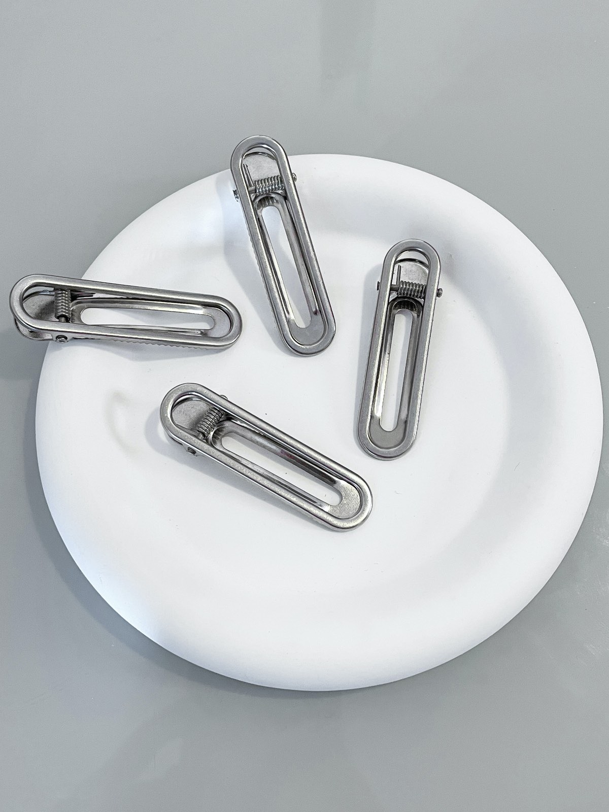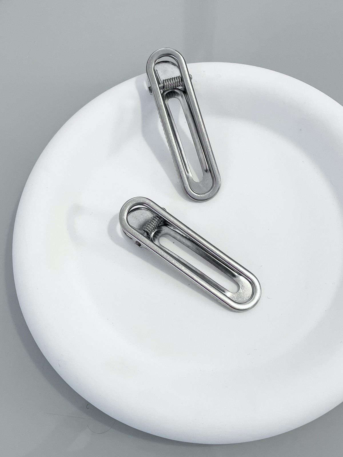 Hair Clip Lana, presilha de cabelo de metal prata com formato oval super estiloso