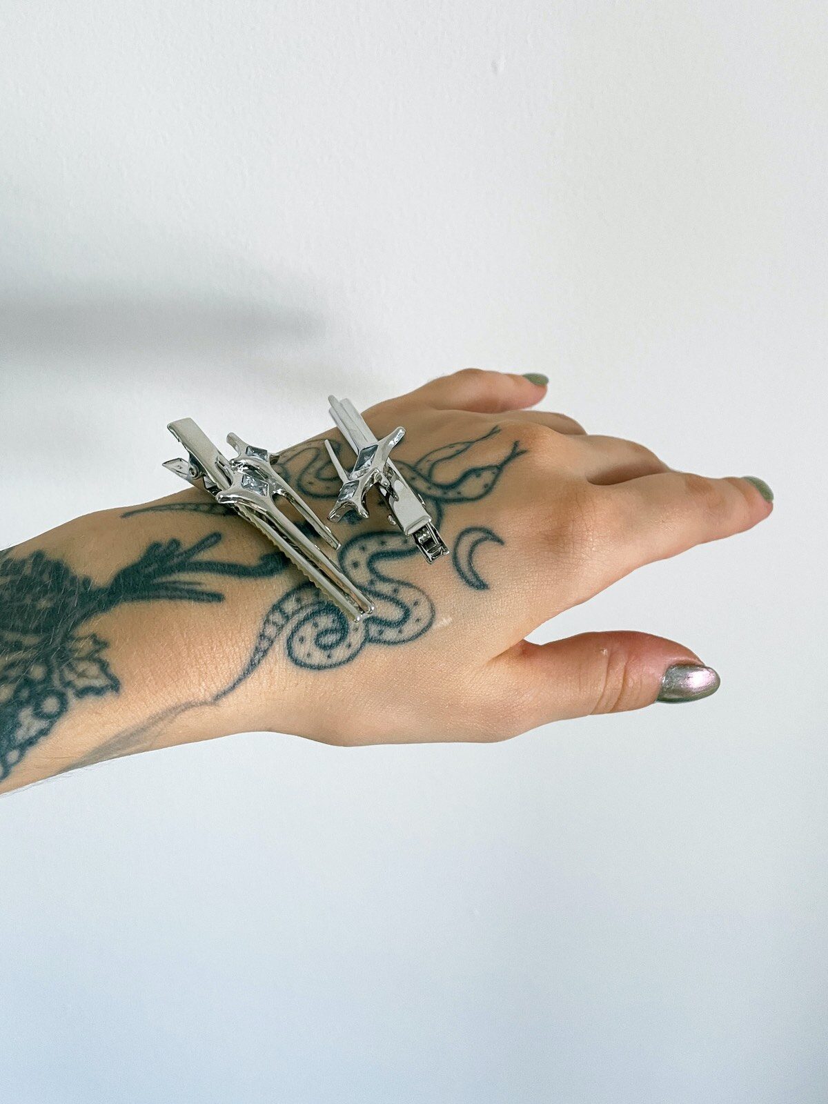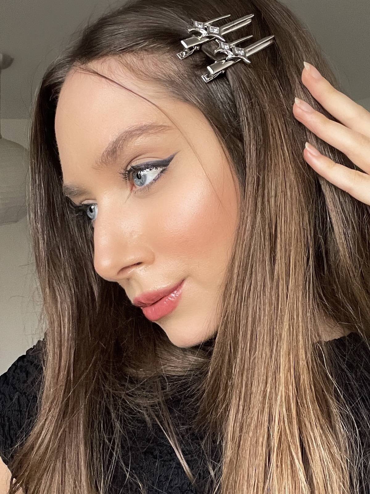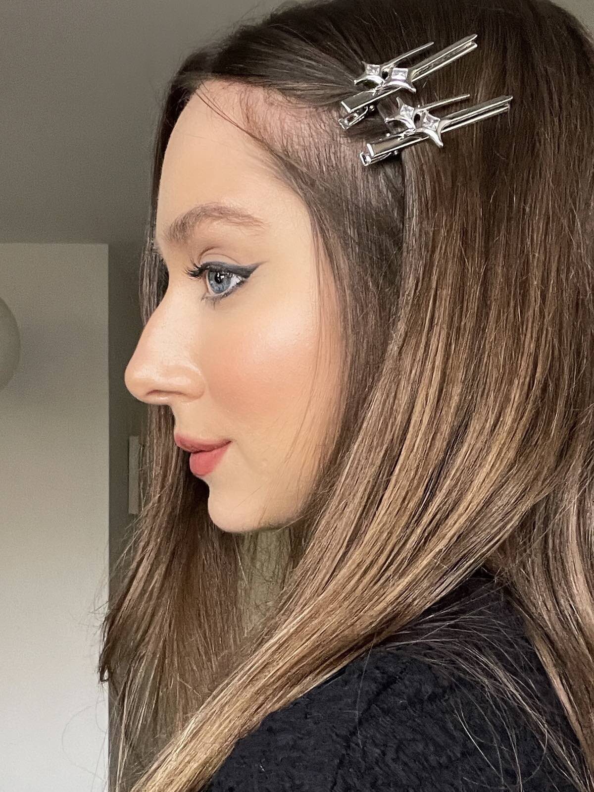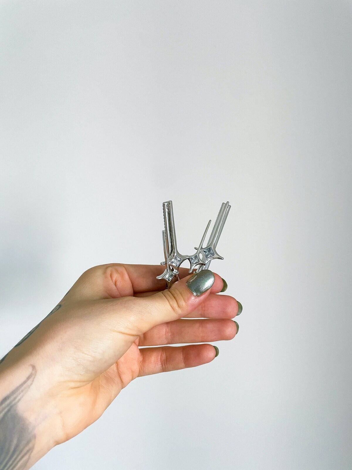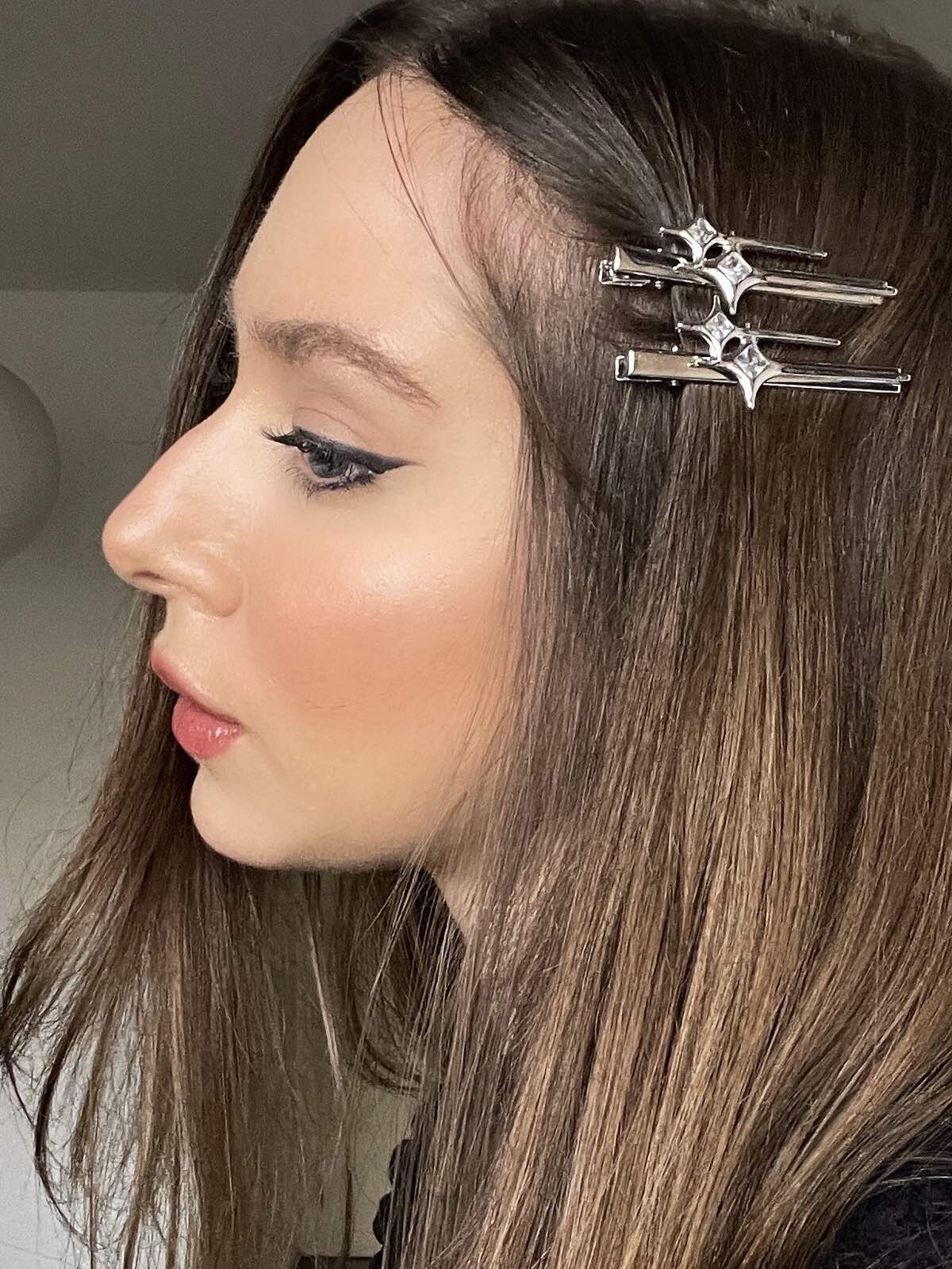 Supernova! A estrela? Não, o seu novo hair clip favorito! Esse grampo cromado tem um design escultural e alongado, com detalhes em sparkles 3D que parecem ter vindo direto de outra galáxia. O strass central funciona como ponto de luz e traz ainda mais charme (e brilho!) pro look. Uma verdadeira joia! Leve, firme e super versátil, ele prende super bem todo tipo de cabelo — do fininho ao volumoso. Use sozinho pra um toque inesperado ou combine com outras presilhas pra criar um styling mais elaborado. Um acessório com presença, que transforma qualquer penteado em segundos!