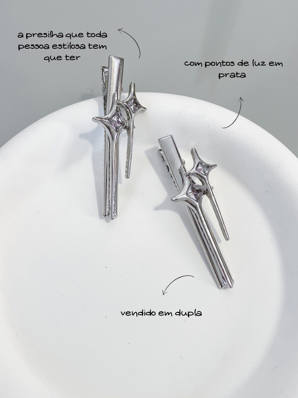 Hair Clip Sparkle, presilha de cabelo de metal prata com formato de estrela sparkle