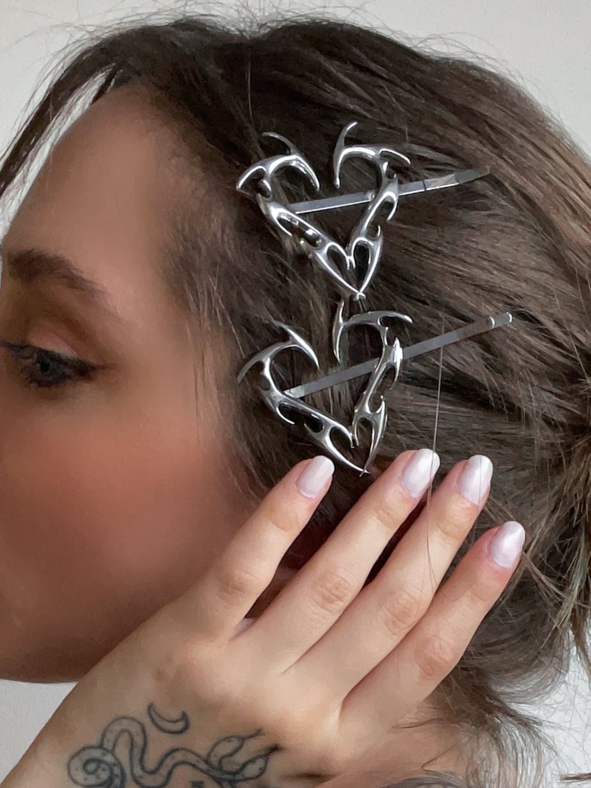 Hair Clip Tribal Heart, presilha de cabelo de metal prata com formato de coração estilo tribal