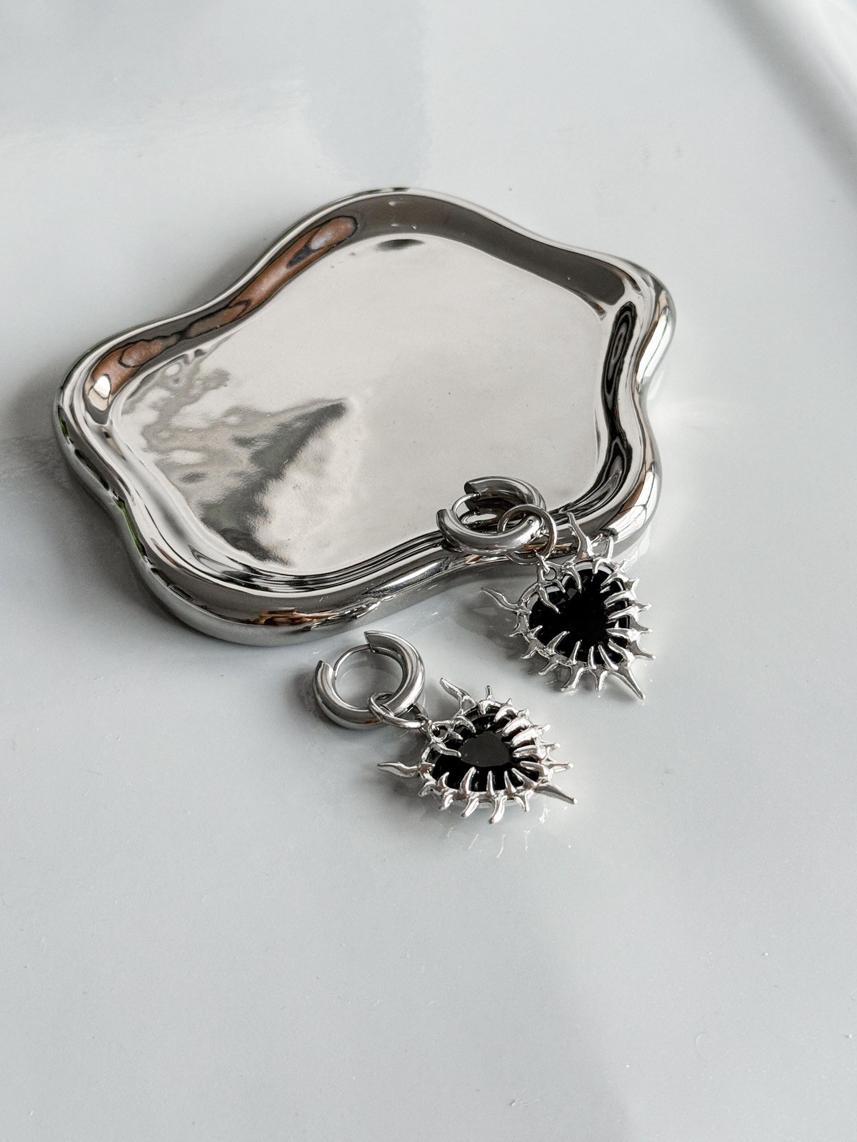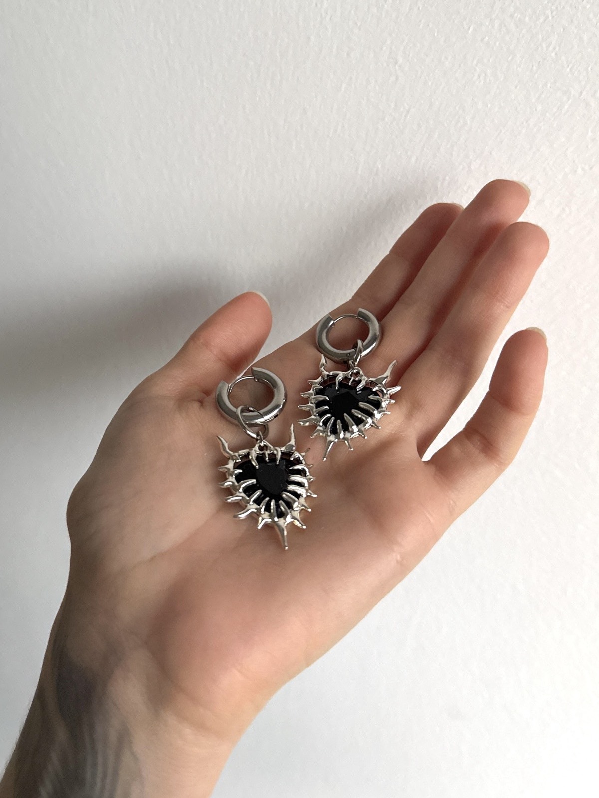 Whaaat? Sim, é isso mesmo que você ouviu. O mood mais desejado do momento é esse pingente de coração que trouxemos nesse drop como uma super novidade – ela já existia no colar Create your vibe mas agora trouxemos em mais modelos. Ele é todo lisérgico com uma pedra preta em formato de coração e em volta esse metal ”derretido” que dá mais charme ainda à peça. A base é de argola e clique: super fácil de colocar e tirar e não pesa na orelha.