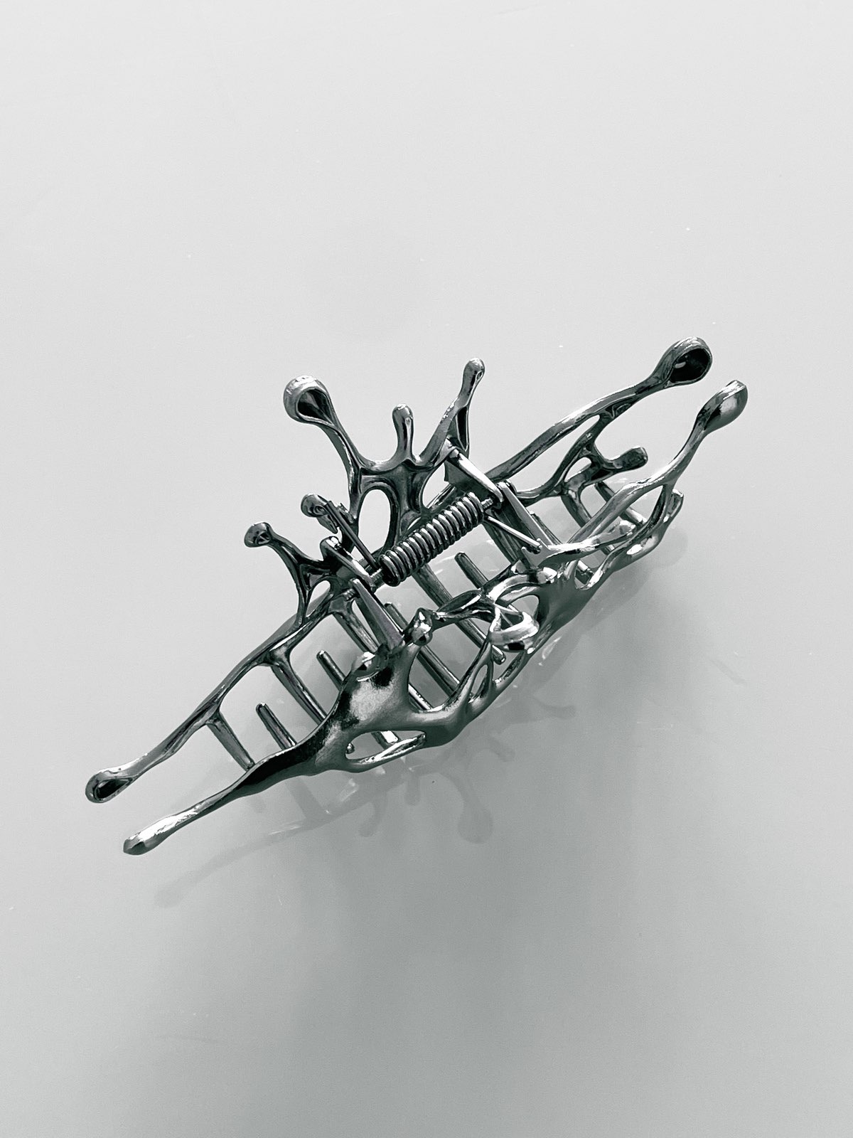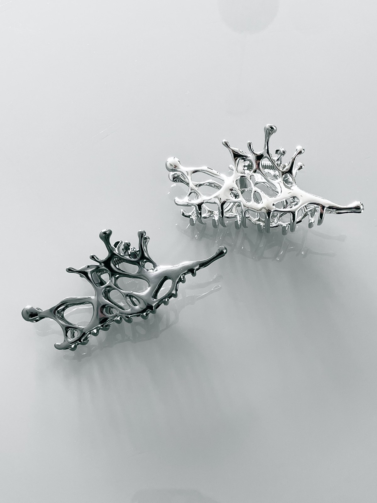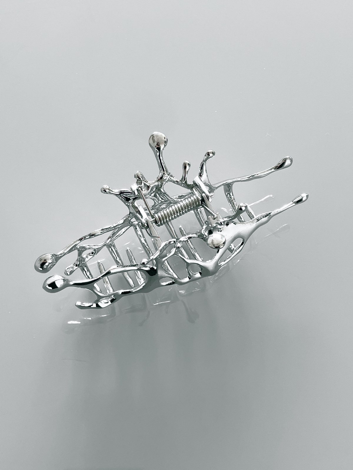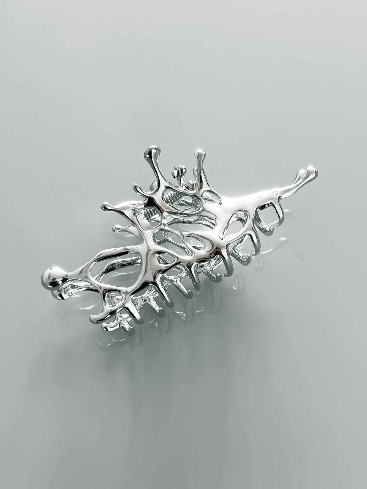Piranha Lysergic, piranha de cabelo feita com metal prata. Presilhas com formato orgânico irregular