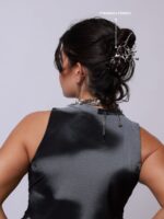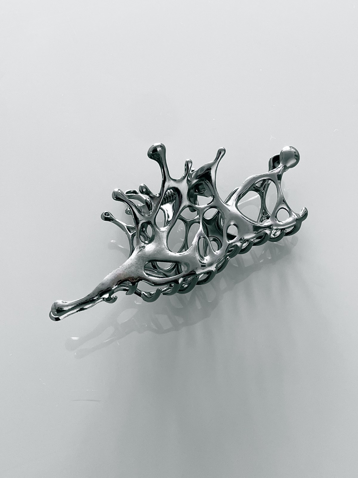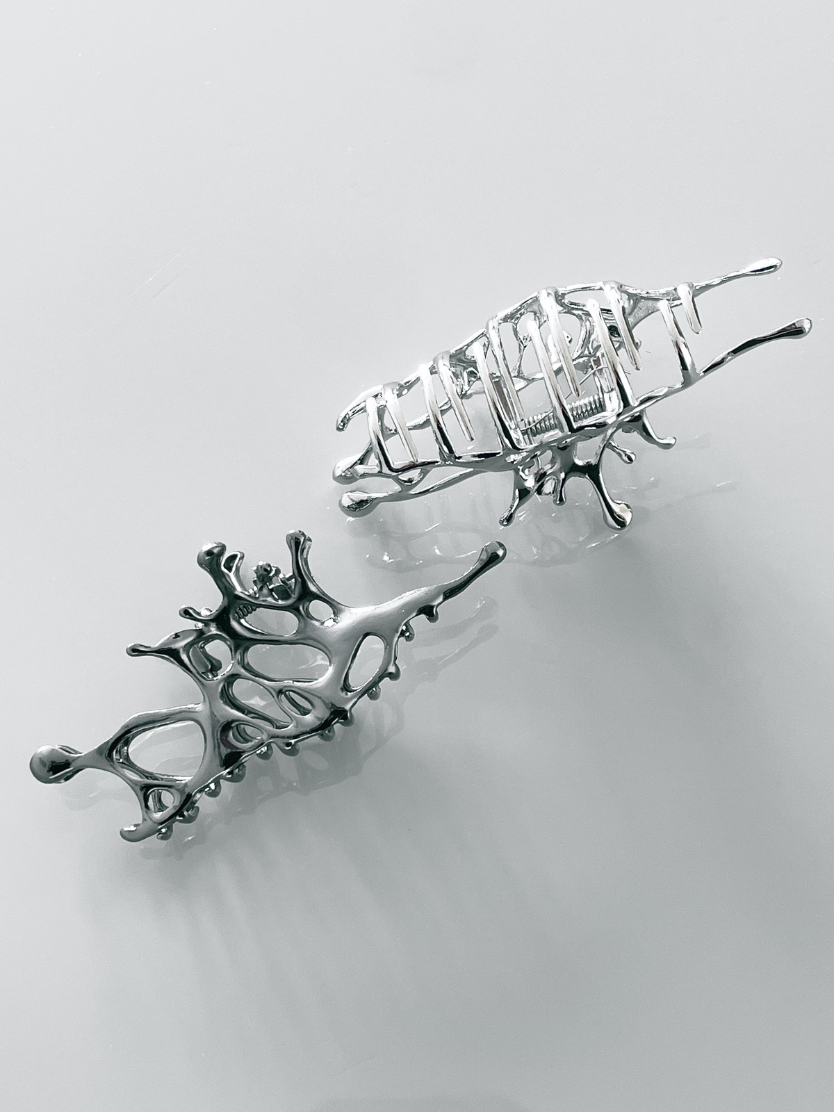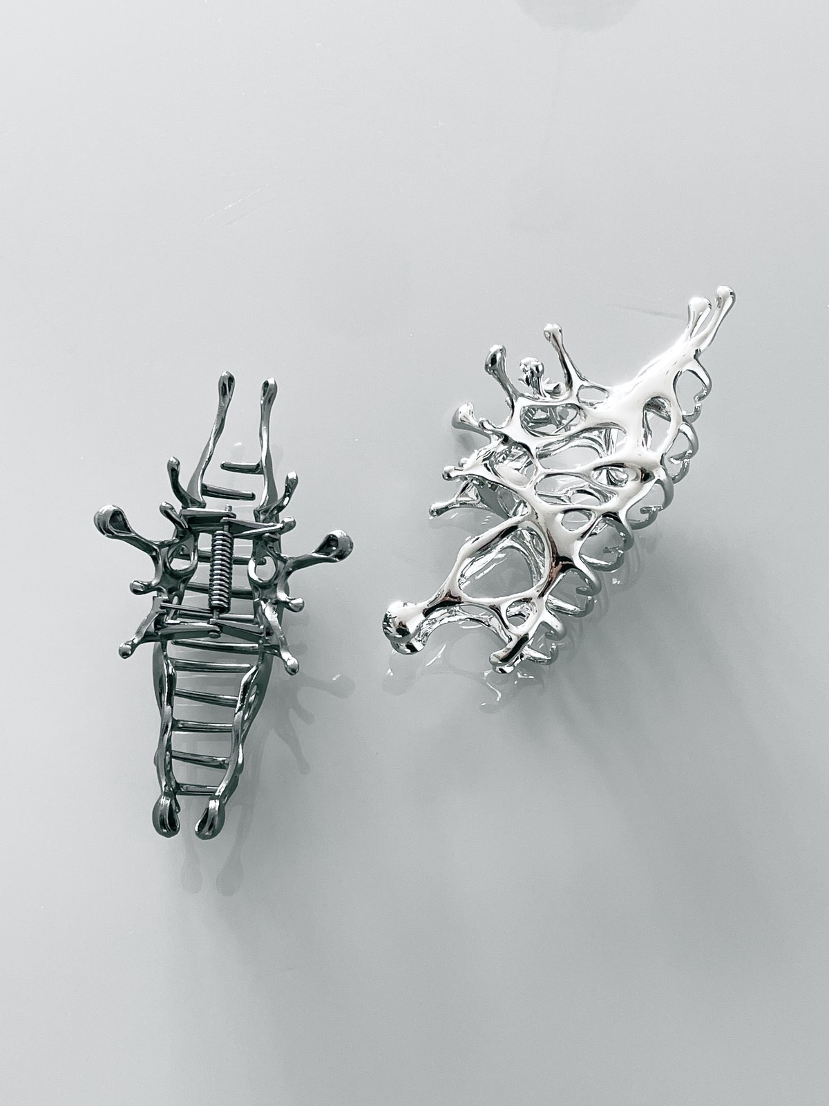 Piranha Lysergic, piranha de cabelo feita com metal prata. Presilhas com formato orgânico irregular