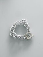Pulseira Fecho Pino, minimalista e estilosa. Feita com corrente prata e fecho pino