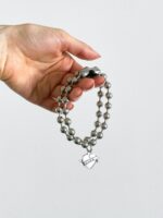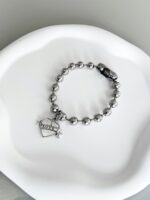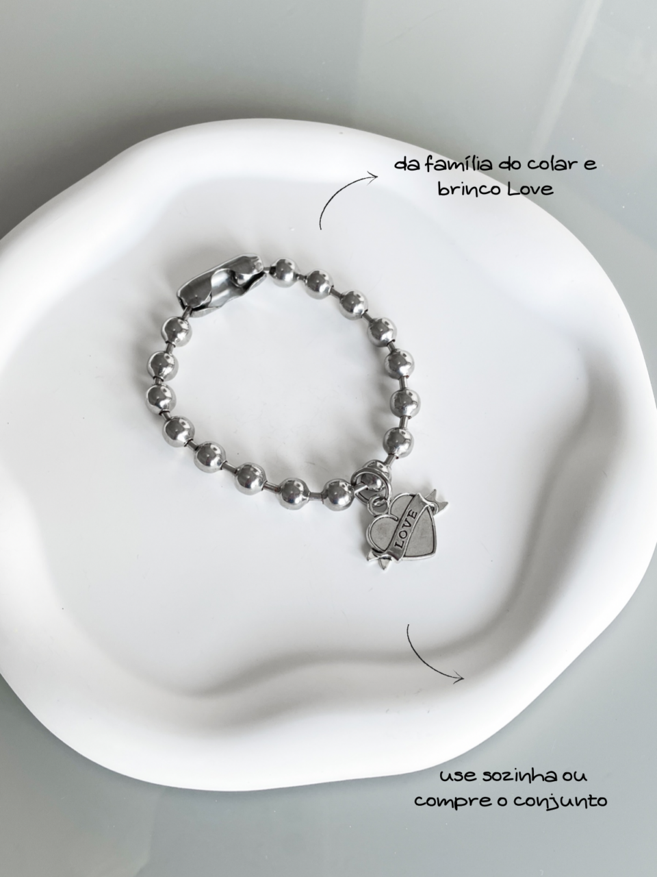 Pulseira Love, feita com corrente bolinha e pingente coração Love