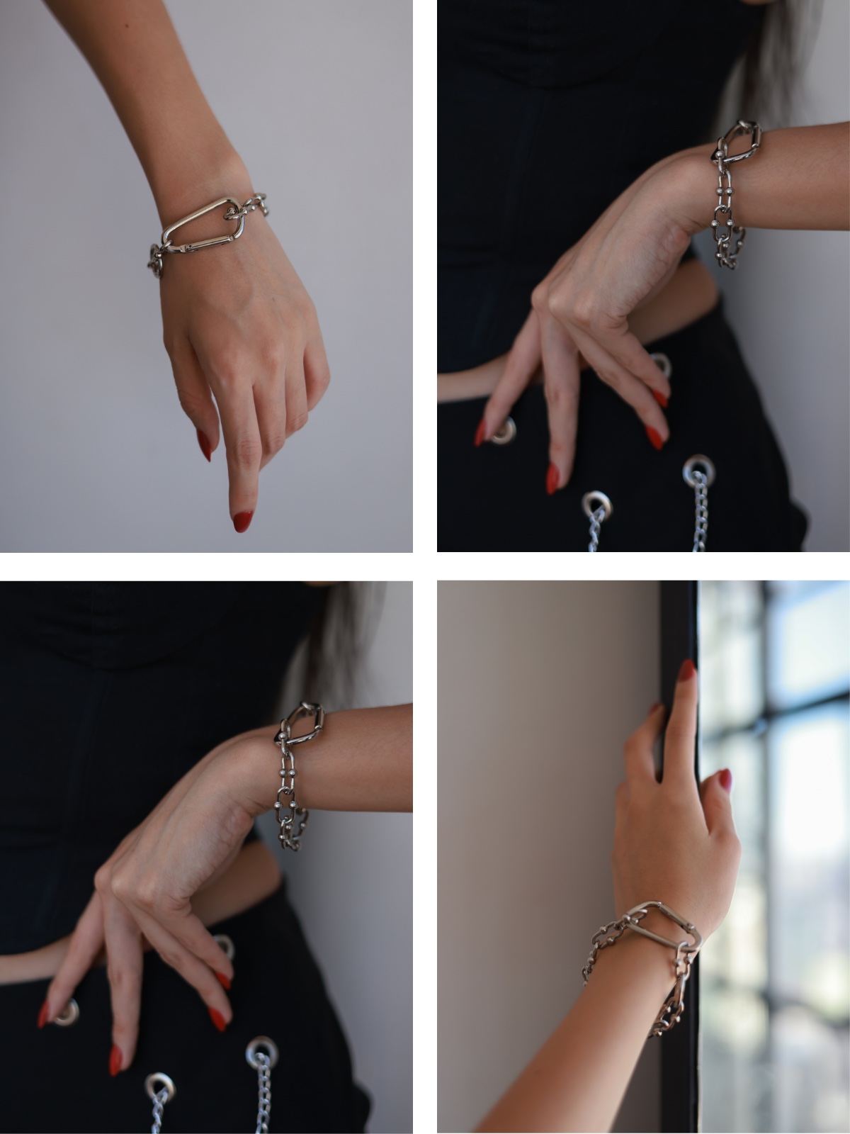 Claro que nesse lançamento não poderia faltar uma pulseira incrível com os elos lisérgicos que estão super em alta e temos agora em brincos, colares e pulseira para você usar junto. E ela ainda tem esse fecho mosquetão incrível que dá ainda mais charme à peça. Você vai amar colocá-la em seus melhores looks. ENJOY!